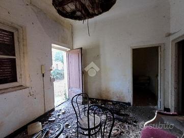 La parte abitativa, completamente da ristrutturare e provvista di giardino antistante è situata al piano terra ed è così composta; la zona giorno comprende un ingresso in soggiorno ed una cucina abitabile mentre la zona notte è composta da due camere matrimoniali.