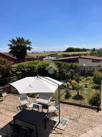 Al primo piano 2 camere, studio e bagno,entrambe i piani sono collegati da una scala esterna coperta e verandata.