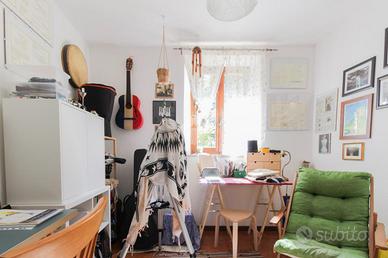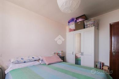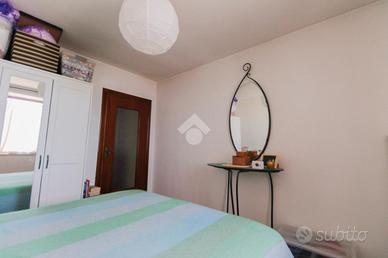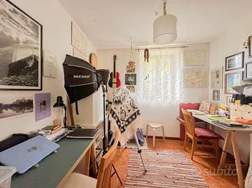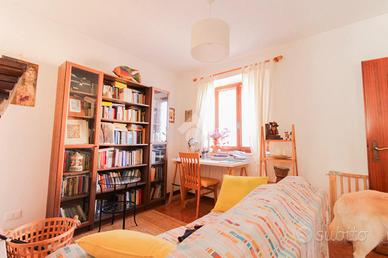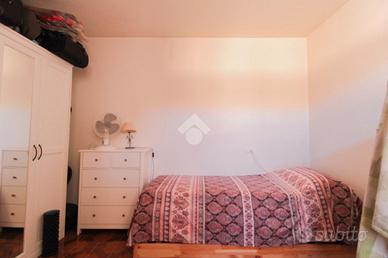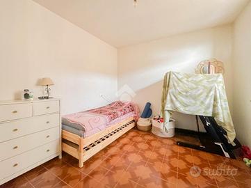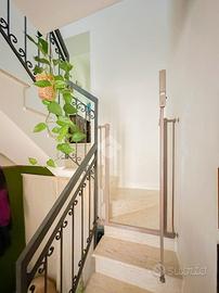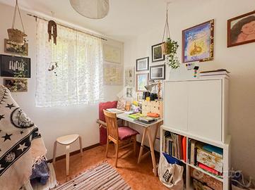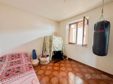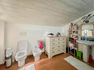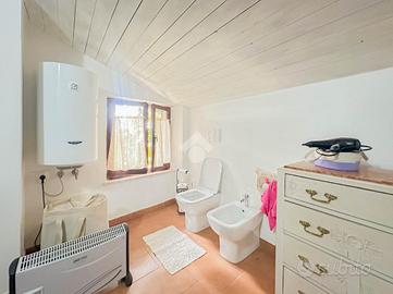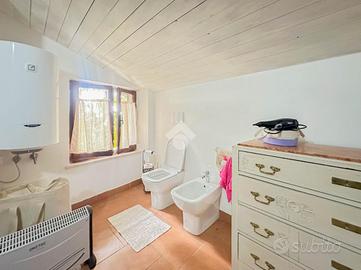 Al primo piano sono presenti le due camere da letto, una matrimoniale e una singola, oltre a un bagno mansardato con finestra, completo di sanitari in ceramica e box doccia.