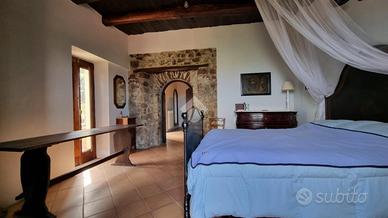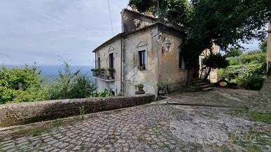 Palazzo d'epoca, di forma regolare, risalente alla metà del 1700, restaurata sapientemente dai mastri del luogo negli anni '30 in puro stile liberty, composta da 3 piani, terrazzo solarium, terrazzi a livello, giardino, uliveto e orto. Caratterizzata dagli ampi soffitti decorati da Lorenzo Marini, pittore della scuola salernitana, e da tipici pavimenti in graniglia con disegni geometrici, che danno eleganza e sobrietà all'intero edificio. Dal portone principale si accede nell'ingresso della proprietà, dove immediatamente si può apprezzare la perfetta conservazione architettonica del restauro effettuato e l'attenta ricerca, da parte del proprietario, nei materiali utilizzati negli anni a venire, al fine di non alterare lo stile originario. Quattro luminosi ambienti, di cui uno con camino, sono distribuiti su altrettanti lati della casa e collegati tra loro. Dal terrazzo a livello è possibile perdersi nell'orizzonte delle colline cilentane ed ammirare il borgo di San Mango, Rocca Cilento e il suo Castello, la Chiesa di Santa Maria degli Eremiti e il sottostante giardino terrazzato di pertinenza alla proprietà. Dalla scala interna si raggiunge un terrazzo con un pergolato di uva fragola; sempre dalla zona ingresso si accede al bagno e attraverso un'altra rampa scale si raggiunge il piano inferiore. Questo, restaurato in epoca più recente, con l'intera pavimentazione in gres porcellanato effetto cotto e i soffitti con le caratteristiche travi a vista, si sviluppa da un primo ampio ambiente con un camino alle due camere matrimoniali; completano il piano lo studio e il bagno. Da tutti gli ambienti è possibile accedere alle ampie balconate, che assicurano una bella vista, come quella del piano superiore, e presentano un'ottima esposizione al sole. Un'altra rampa scale si collega alla zona pranzo e all'ampia cucina abitabile; entrambi gli ambienti sono caratterizzati dalle pareti bianche e dalla pietra a vista, originaria della casa, presente anche nella pavimentazione. ...