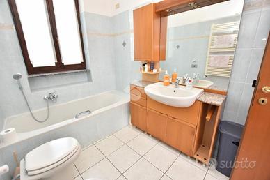L'immobile è suddiviso in due appartamenti di tre locali su due livelli abitativi con una superfice complessiva di circa 220 mq e così disposti: al piano terra abbiamo la zona giorno composta da cucina abitabile, bagno di servizio finestrato e l'ampio soggiorno. Tramite la scala a rampa quadrata si accede alla zona notte cosi strutturata: bagno padronale finestrato con doccia e due camere matrimoniali.