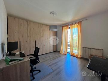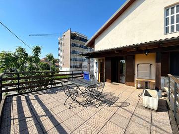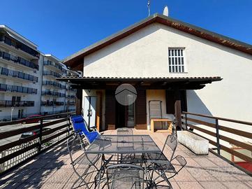 In vendita splendida soluzione indipendente di tre piani libera su tre lati, nella rinomata zona parchi. La soluzione dispone di tre bagni, uno al piano terra e due al primo piano, ed è dotata di due box auto da 20 mq ciascuno, con accesso diretto all'abitazione. La proprietà include anche una cantina, due ampi terrazzi di un totale di 46 mq con porticato con travi di legno, tegole e parapetto in PVC, oltre a un balcone.