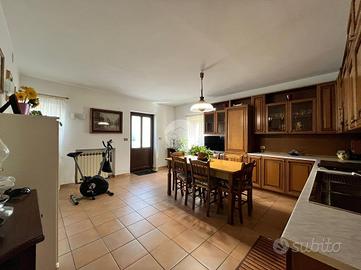 Al piano terra troviamo un piccolo ingresso per il piano superiore, due locali di sgombero utilizzati come taverna e locale lavanderia, un disimpegno e un bagno. Sempre al piano terra, un caminetto con due termoventilatori e finestre dotate di inferriate garantiscono comfort e sicurezza.