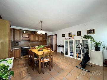 Il primo piano ospita un appartamento con cinque stanze: cucina, soggiorno, camera da letto, studio/stanza, sala, doppi servizi e un locale lavanderia con stenditoio e cabina armadio. Il secondo piano è costituito da un sottotetto raggiungibile tramite scala retrattile dal bagno di servizio del secondo piano, attualmente adibito a soffitta non abitabile, ma con altezza sufficiente per consentirne l'abitabilità.