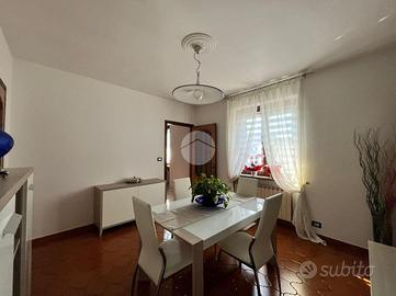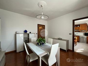 Al piano terra troviamo un piccolo ingresso per il piano superiore, due locali di sgombero utilizzati come taverna e locale lavanderia, un disimpegno e un bagno. Sempre al piano terra, un caminetto con due termoventilatori e finestre dotate di inferriate garantiscono comfort e sicurezza.