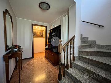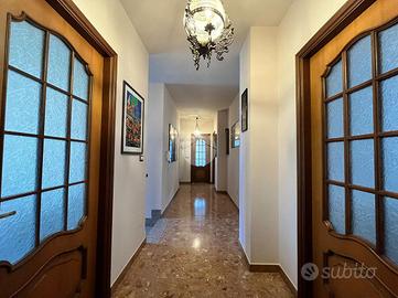 In vendita splendida soluzione indipendente di tre piani libera su tre lati, nella rinomata zona parchi. La soluzione dispone di tre bagni, uno al piano terra e due al primo piano, ed è dotata di due box auto da 20 mq ciascuno, con accesso diretto all'abitazione. La proprietà include anche una cantina, due ampi terrazzi di un totale di 46 mq con porticato con travi di legno, tegole e parapetto in PVC, oltre a un balcone.
