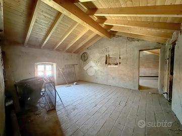 La parte abitativa è disposta su due livelli. Il piano terra ha un soggiorno, la cucina, una camera, un locale caldaia/lavanderia e un bagno. Al primo piano troviamo quattro camere da letto ed un bagno. Salendo la scala si accede al sottotetto in ottimo stato e rifatto recentemente.