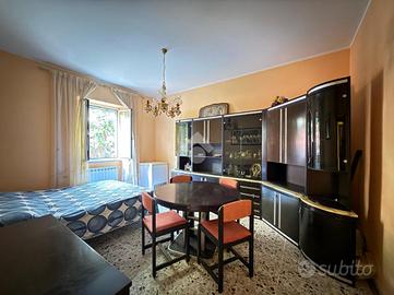 L'appartamento al piano terra è così composto: ingresso, corridoio, un ampio soggiorno, cucina abitabile, bagno finestrato con vasca e due ampie camere matrimoniali e luminose.