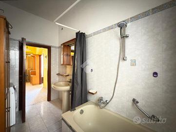 L'appartamento al primo piano invece è composto da un grande e luminoso soggiorno che conduce ad una cucina abitabile, ad una camera matrimoniale con uscita sul balcone, una seconda camera matrimoniale e bagno finestrato con vasca.