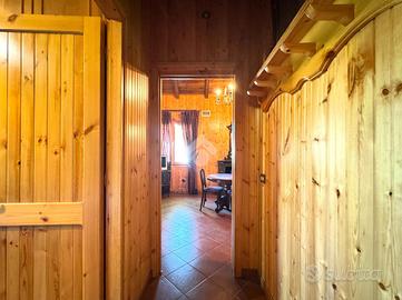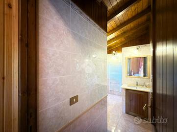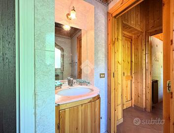 Questa abitazione, disposta su più livelli, offre spazi ben distribuiti e funzionali. Al piano terra rialzato troviamo un portico esterno entrando un soggiorno accogliente con camino in marmo, cucina separata abitabile e bagno di servizio finestrato con doccia, con uscita all'esterno. Proseguendo troviamo un diaimpegno che ci conduce alle camere matrimoniali ampie di cui una con un bagno funzionale e doccia.