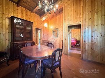 A completare la soluzione allacci comunali, autoclave 2.000 lt, riscaldamento autonomo tramite radiatori, camino, serbatoio GPL, infissi in legno doppio vetro con scuri, citofono, cancello automatico con doppio accesso ed aria condizionata canalizzata.