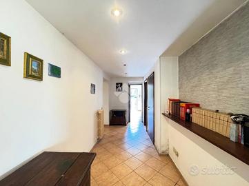 A completare la soluzione: infissi in legno/PVC doppio vetro zanzariere e persiane, camino, riscaldamento autonomo tramite radiatori a caldaia, due box auto, giardino, ingresso indipendente.