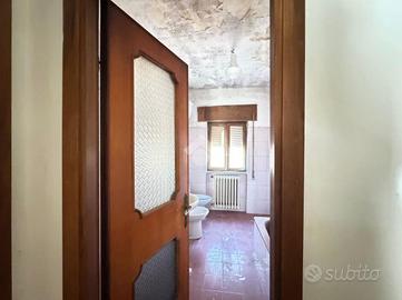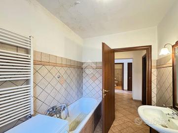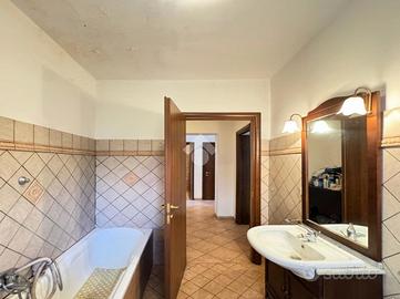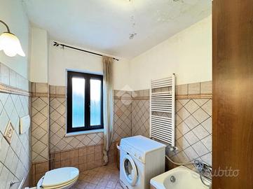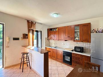 Al primo piano si trova un appartamento accogliente con cucina funzionale, soggiorno ampio e luminoso con porta finestra sul portico, corridoio, due bagni di cui uno cieco e l'altro finestrato con vasca, camera matrimoniale e cameretta.