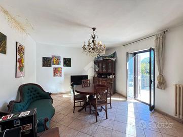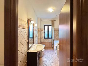 Al secondo piano si sviluppa un appartamento caratterizzato da ingresso indipendente, soggiorno con uscita sul balcone, cucina separata con camino, disimpegno, camera matrimoniale, cameretta, bagno finestrato con vasca, corridoio e scala interna che conduce al terrazzo panoramico.