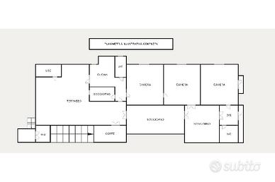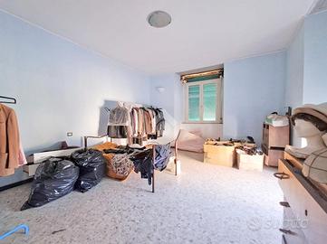 Proseguendo verso l'appartamento parzialmente ristrutturato, troviamo un pratico soggiorno con open space completo di angolo cottura, a seguire due camere da letto matrimoniali entrambe finestrate, comodo antibagno e bagno.