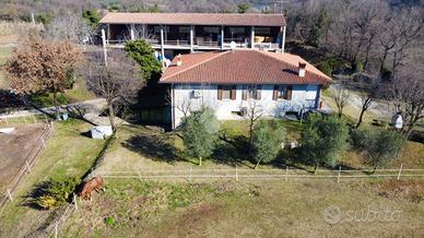 Proponiamo stupenda proprietà immersa nel verde a 5 km dal lago. La proposta è unica nel suo genere ed include due abitazioni già esistenti completamente indipendenti tra loro, tutti i terreni circostanti, oltre a un' enorme stalla con il suo fienile dove sarebbe possibile recuperare ulteriore cubatura per fare altre abitazioni o ampliare quelle già esistenti. Nello specifico la proprietà è così composta: -Casa di ca. 233 MQ con al piano terra soggiorno e cucina, quattro camere e due servizi finestrati mentre nell'interrato ci sono l'autorimessa e la cantina; -Appartamento di ca. 148 MQ posto al piano terra con soggiorno e cucina, tre camere e due servizi finestrati; -Terreni di proprietà per ca. 22.000 MQ -Stalla con il suo portico di ca. 430 MQ -Fienile di ca. 345 MQ Adagiato sulle colline, Soiano è un piccolo, tranquillo paese a breve distanza dai grandi centri e dal lago. La sua posizione domina tutta la Valtenesi offrendoci così una vista lago mozzafiato. Soiano è un'interessante meta anche dal punto di vista sportivo: nella zona ci sono centri di equitazione per chi ama percorrere a cavallo le colline e i vigneti; è poi particolarmente conosciuto grazie ai famosi campi da golf che si estendono su un'area di 110 ettari di terreno e comprendono percorsi che si snodano tra il Castello e le colline, con viste di incantevole bellezza. La zona della quale si occupa l'ufficio comprende i comuni di Padenghe sul Garda, Soiano del Lago e Calvagese della Riviera. Nel panorama immobiliare del lago di Garda, questi paesi hanno il vantaggio di essere ubicati in una posizione strategica in quanto si trovano nel mezzo di due località importanti come Desenzano e Salò. Inoltre, grazie alla morfologia del territorio che si presenta mossa e molto verde, si ha l'opportunità di trovare abitazioni con vista lago in posizioni tranquille. Queste caratteristiche sono in grado di soddisfare sia le esigenze di chi è in cerca di un'abitazione da adibire a pr