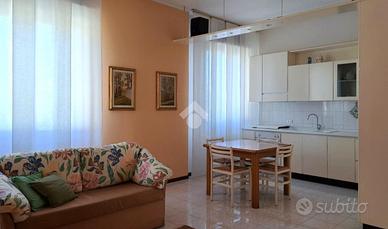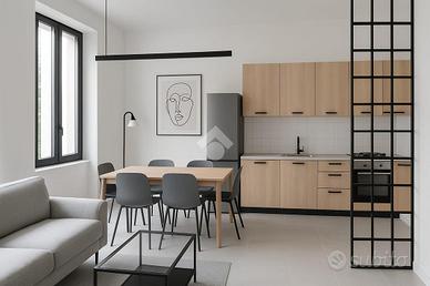 Ingresso su disimpegno che separa la zona giorno dalla zona notte; Ampio e luminoso soggiorno con cucina a vista; Camera da letto matrimoniale di generose dimensioni; Ampio bagno finestrato con vasca; Balcone con affaccio interno sul giardino di proprietà.