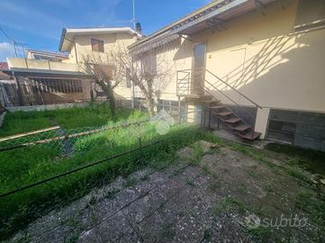 SOLESINO: casa indipendente disposta tutta su un unico piano vicina al centro del paese e ai principali servizi e comoda alla strada statale. La casa si svilupp al piano terra rialzato. Salendo alcuni gradini entrando troviamo l'ampio ingresso, sulla sinistra la camera da letto matrimoniale e sulla destra il salotto diviso dalla cucina abitabile dalla quale si accede all'antibagno e al bagno finestrato con doccia e vasca. Dall'antibagno pochi scalini ci conducono al cortile interno dal quale da una scala esterna si arriva all'ampio terrazzo solarium di circa 60 mq. La disposizione interna dell'immobile offre la possibilità di creare due camere da letto. Completano la proprietà, il seminterrato con affianco l'ampio garage di circa 60 mq e il giardino. L'immobile necessita di alcuni interventi di ristrutturazione.
