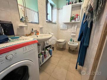 Proseguendo al secondo piano troviamo un appartamento composto da cucina e soggiorno, bagno finestrato con doccia e camera da letto mansardata con accesso al terrazzo.