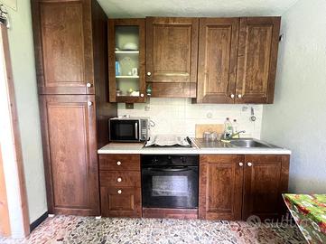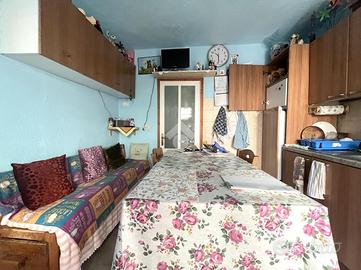 Al primo piano troviamo un appartamento composto da una luminosa cucina con soggiorno open space, un bagno finestrato con doccia e una camera matrimoniale.