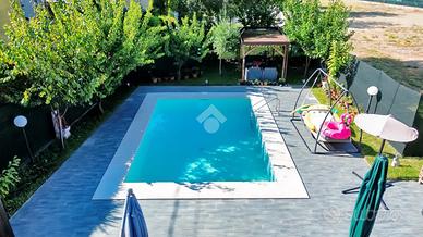 Completano la casa i doppi vetri , la caldaia a condensazione, la termostufa a pellets, le inferriate, le zanzariere, aria condizionata con pompa di calore, e la predisposizione per la videosorveglianza esterna.
