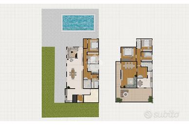 Questa villa completamente indipendente e recintata è molto più di una semplice abitazione. È un'opportunità concreta per chi desidera spazio, autonomia e qualità della vita. Si sviluppa su due livelli distinti, con due unità abitative perfettamente speculari, ciascuna composta da soggiorno, cucina, tre camere da letto e due bagni. Una soluzione ideale per una famiglia numerosa o per due generazioni che scelgono di restare unite, ma con i propri spazi.