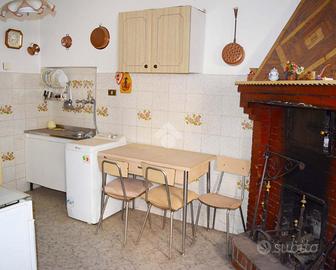 Piano Rialzato di cucina con camino (il camino è originale con forno), disimpegno, soggiorno, camera, bagno e balcone;