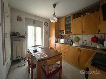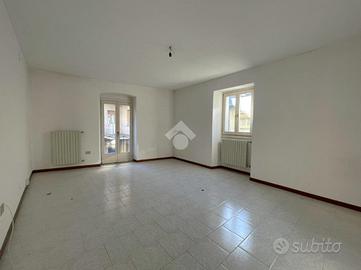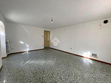 Al primo piano si trova il primo appartamento, caratterizzato da una cucina abitabile, un bagno finestrato, due camere da letto e un ampio soggiorno luminoso. La camera matrimoniale e la cucina affacciano su un lungo balcone.