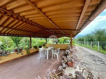 Il terreno, che circonda la proprietà, misura circa un ettaro, è completamente recintato e offre circa 70 piante da frutto e 65 piante di ulivo.