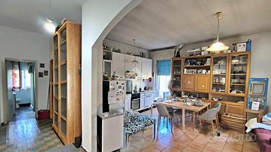 All'interno troviamo quattro camere da letto, due bagni, due soggiorni, due cucine e un balcone, praticamente attualmente l'immobile viene sfruttato come se fosse costituito da due appartamenti distinti tra loro a servizio dei quali ci sono svariati accessori come il garage e vari ripostigli. Trattasi di un'ottima soluzione per chi cerca un'ampia abitazione che goda di indipendenza ad un prezzo davvero contenuto.