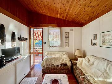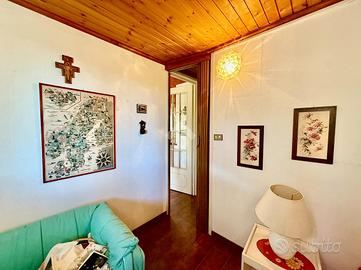 Ampio porticato panoramico, zona giorno con angolo cottura separato, camera matrimoniale, camera singola e bagno.