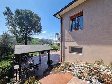 TERAMO. VILLA VOMANO. Collocata in splendida zona panoramica con vista sul 'Gran Sasso', soluzione indipendente di ampia metratura immersa nel verde. Posta su due livelli, l'abitazione si compone al piano terra di un ampio ingresso, una cucina abitabile, un luminoso soggiorno di 37 mq circa, un corridoio, tre spaziose camere da letto, un wc ed un bagno con doccia. A completare il livello un comodo balcone ed un riservato portico, posto sul retro, luoghi ideali per rilassarsi e lasciarsi incantare dalla splendida vista. Il piano seminterrato comprende una taverna con stufa, tre cantine ed un garage di 45 mq circa. L'immobile si circonda di una corte esterna pavimentata di circa 745 mq, oltre ad un terreno agricolo di circa 1.090 mq, irrigabile grazie alla presenza della grassetta ed arricchito da ulivi e piante da frutto. Una casa che si distingue per la generosità degli spazi interni ed esterni, per la sua posizione riservata che garantisce privacy e tranquillità, ma al tempo stesso ben collegata ai principali servizi. Venduta completa di mobilia. Seguici su Facebook e Instagram per rimanere sempre aggiornato. Cerca 'Tecnocasa Castelnuovo Vomano e Pagliare'. Ogni agenzia ha un proprio titolare ed è autonoma - Le presenti informazioni non costituiscono elemento contrattuale.