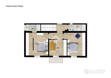 Al piano superiore tre camere da letto e due bagni.