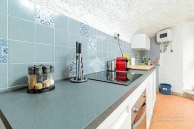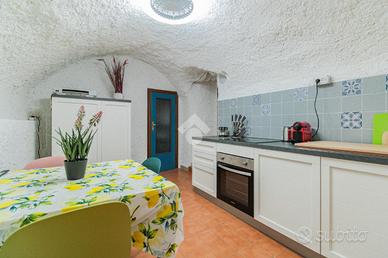 Al piano terra troviamo una graziosa cucina con soffitti a volto, con un bagno con doccia ed una camera da letto matrimoniale.