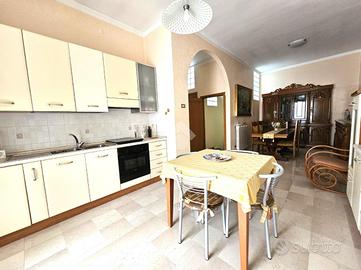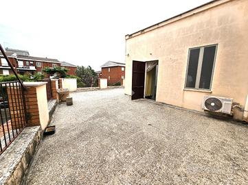 Completa la proprietà una spaziosa autorimessa posta al piano terra con accesso da Via Tripoli, perfetta per piu' veicoli o mezzi agricoli (dato l' altezza delle volte) o da adibire anche a deposito, laboratorio o taverna e con annesso ampio locale con servizio.