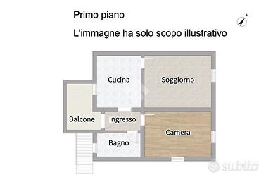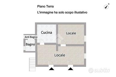La soluzione si dispone su due piani, al piano inferiore troviamo la zona giorno, composta da un luminoso soggiorno, una cucina separata abitabile, un ripostiglio e il primo servizio igienico finestrato con box doccia.