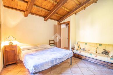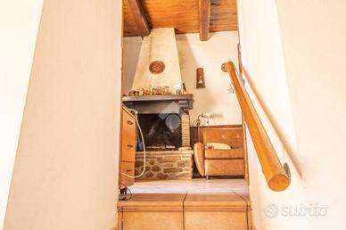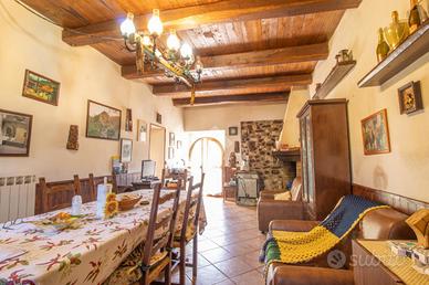 La casa, in stile rustico con travi a vista e finiture tradizionali, si sviluppa su due livelli con ambienti accoglienti.