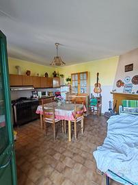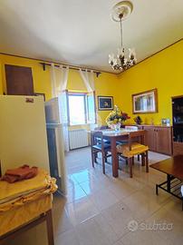 Dal portone d'ingresso accediamo ad una sala con camino ed angolo cottura e annesso bagno di servizio; si accede poi tramite ad una scala esterna al piano primo dell'abitazione.