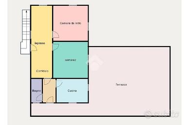 Al piano terra si trova il doppio box carrabile, tramite scala esterna si accede all'ingresso dell'abitazione in grande corridoio arredabile che conduce alle due camere da letto , cucina abitabile e bagno con finestra, al piano troviamo sia la botola per il sottotetto, sia il collegamento diretto alla terrazza, con annessa il terreno di proprietà.