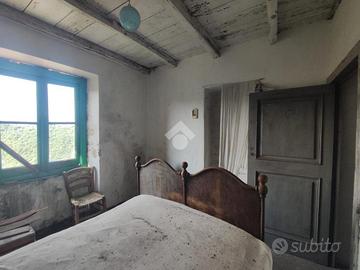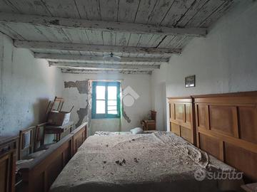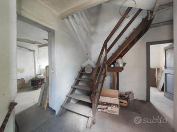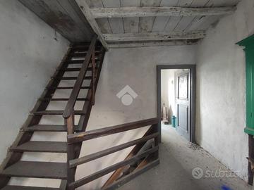 L'immobile si dispone su quattro livelli (3 piani più sottotetto ) ed è situato in posizione dominante e soleggiata; al piano terra troviamo le due cantine comunicanti doatte di finestre, al piano superiore abbiamo 'lingresso nell'abitazione in vano scala arredabile ch econduce all'ampia cucina, una camera utile e vano wc, la scala in legno porta alla zona notte composta da due camere e scala per la soffitta.
