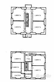 Il primo appartamento si sviluppa su due livelli, al primo piano troviamo 4 camere da letto e un bagno al piano superiore sono posizonate altre due camere , cucina, soggiorno, bagno e balcone.