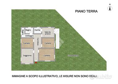 Piano Terra: l'appartamento si apre su un luminoso soggiorno, una sala da pranzo con cucinotto separato, tre camere da letto matrimoniali, un bagno finestrato con doccia e un bagno di servizio.