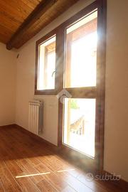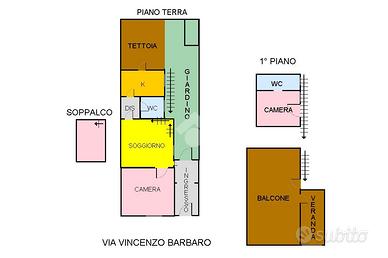 -Al piano terra è composto da: Ingresso, disimpegno, camera matrimoniale, soggiorno con soppalco, bagno e cucina abitabile.