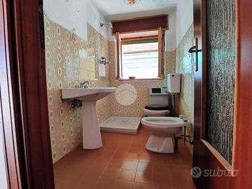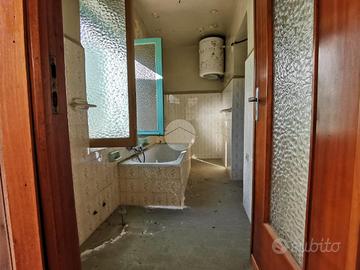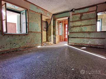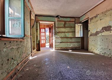 La prima è situata al piano terreno, la porta di ingresso apre su di un piccolo disimpegno; questo conduce sia al bagno con finestra che al soggiorno, il quale presenta allacciamento alla canna fumaria.