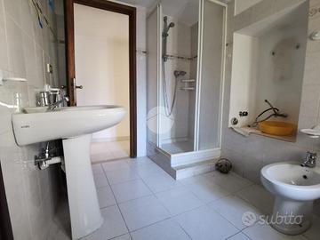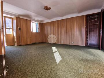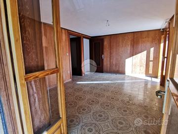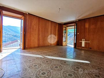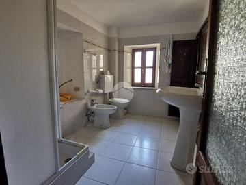 Alla seconda unità si accede dal terrazzo al primo piano, la porta d'ingresso apre sul corridoio interno. La cucina è resa luminosa da due finestre ed una porta, ed è collegata all'antibagno, il quale conduce al bagno principale; questo ha una finestra, ed è composto dai sanitari. La camera da letto al primo piano, oltre ad una finestra, vanta, grazie a due porte finestre, di doppia aperura su balcone e su terrazzo. Tramite la scala a chiocciola interna si giunge al secondo piano, qui troviamo un bagno con finestra, avente i sanitari ed un box doccia, e la seconda camera da letto; questa vanta di grande luminosità e di vista panoramica sulla vallata grazie a due porte finestre che conducono al balcone del secondo piano, inoltre le pareti presentano un rivestimento in legno, ben tenuto.