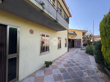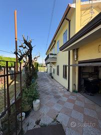 Tribano: in zona di campagna tranquilla proponiamo abitazione indipendente sviluppata su due piani con esterno pavimentato e terreno di 550 mq. La casa in posizione perpendicolare rispetto alla strada presenta l'ingresso carrabile e pedonale pavimentato con un piccolo spazio fronte strada adibito a barbecue, l'ingresso ampio con disimpegno conduce alla cucina abitabile, bagno ristrutturato con doccia , un piccolo ripostiglio nel sottoscala, ed al soggiorno utilizzato attualmente come camera da letto al piano terra. Attraverso la scala interna si raggiunge la zona notte dove troviamo altre due stanze matrimoniali con bagno padronale finestrato con vasca. All'esterno garage singolo, con magazzino ampio separato ed altri annessi rustici infine di proprietà appezzamento di terra di proprietà di 550 mq. Impianto elettrico e caldaia sostiuiti recentemente, riscaldamento autonomo e bagni ristrutturati da pochi anni. A pochi minuti d'auto si raggiungono i principali centri abitati.