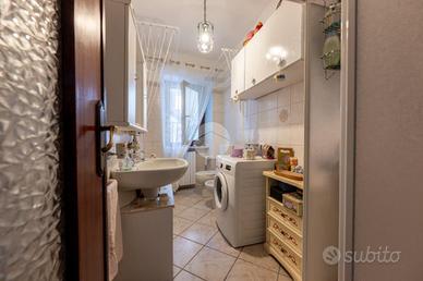 L' accesso avviene sul disimpegno che divide la zona giorno dalla zona notte, da quest'ultima trovano spazio due camere da letto matrimoniali entrambe rese luminose dalle ampie finestre e dal bagno dotato di box doccia. Tramite un secondo disimpegno, si accede alla zona giorno formata dal cucinino e da un' ampio soggiorno che da sfogo sul terrazzo esterno, idale per pranzi all' aperto o momenti di relax.