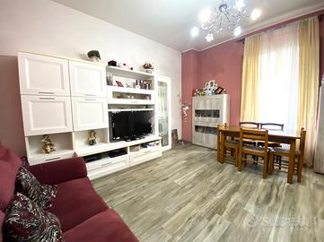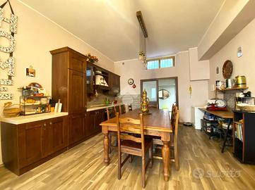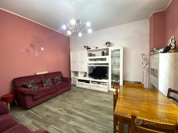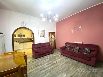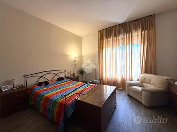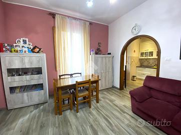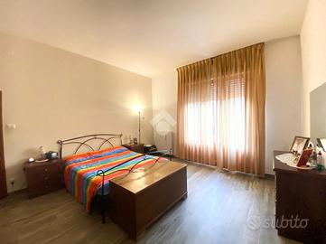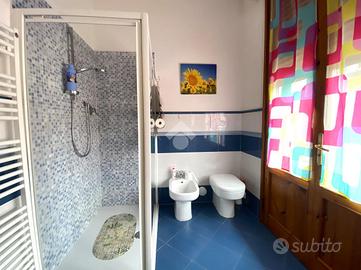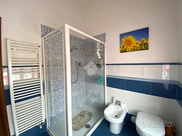Al primo piano troviamo la zona giorno, composta da cucinotto, soggiorno-sala da pranzo, con accesso diretto ad un lastrico solare, in parte verandato e sfruttato come lavanderia e in parte completamente utilizzabile per pranzi e cene nella serate estive; al medesimo piano sono collocate anche una prima camera da letto matrimoniale ed un bagno finestrato con box doccia, entrambi con porte-finestre che permettono l'accesso ad un balcone.
