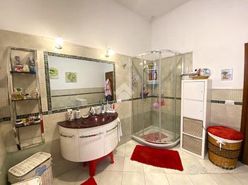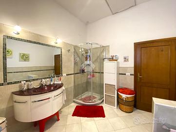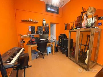 Al piano terra, grazie all'ingresso e al successivo disimpegno, si accede ad un'ampia taverna ristrutturata con impianto di condizionamento di 50 mq (con possibilità di accesso autonomo anche dall'esterno dell'immobile) a corredo della quale si sviluppano due ulteriori stanze attualmente utilizzate rispettivamente come palestra e come sala da musica nonchè un bagno ed un ripostiglio.