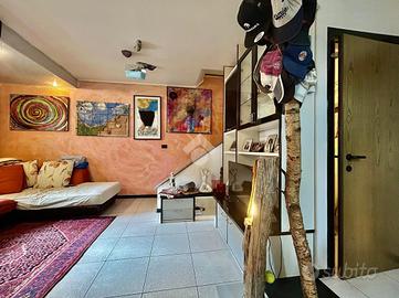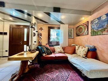 Ad accoglierci alla soluzione troviamo il luminoso soggiorno con accesso al giardino privato.